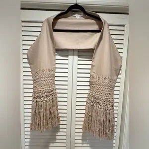 CAROLINA HERRERA—Vintage Taupe/Beige Scarf/Wrap—90% Wool, 10% Cashmere