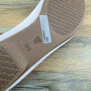 ROTHY'S The Flat Round Toe Flax Birdseye pink Comfort Ballet Flats in size 11. These flats feature a synthetic upper material, a flat style, and a tan color that will match any outfit. Perfect for women who want to add a touch of elegance to their wardrobe, these flats are a must-have.