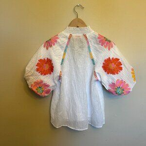 THML White Embroidered Puff Sleeve Top Size Extra Small