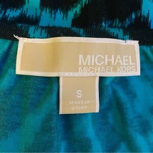 Michael Kors Teal and Black Animal Print Blouse EUC S
