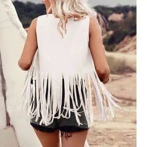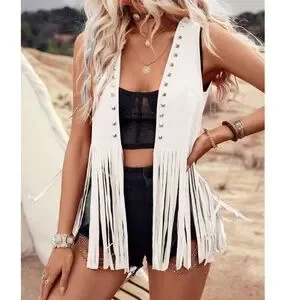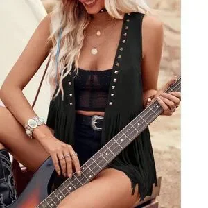 Western Studded Fringe Detail Open Front Vest