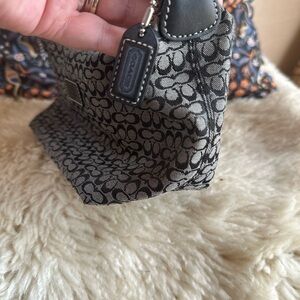 Elevate your style with this sleek Coach Hand Pouch in a chic black and gray signature pattern. Designed for the modern woman, this clutch bag combines elegance with practicality, perfect for a day-to-day use or special occasions. Crafted with an exterior material that exudes luxury and durability, this mini clutch is a versatile accessory that complements any ensemble. The bag features a timeless design that's part of Coach's renowned product line, ensuring both authenticity and a touch of sophistication for anyone who carries it.