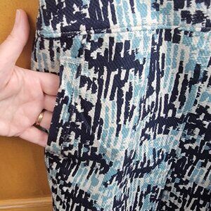 Textured cotton/spandex skirt with navy, ivory and teal abstract print by Ann Taylor.