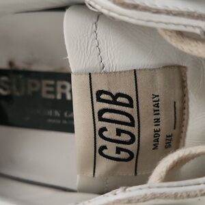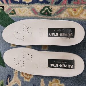 Reposhing this item I purchased from @katiejerozal11. all photos in listing are my own, and show accurate current condition. still great condition with lots of life left! white/off white main color, golden yellowish sort of color for the star, a little bit deeper yellow / rusty color for the accent on the heel. I have cared for them with leather cleaning and conditioning wipes and cleansing wiped on the bottom soles