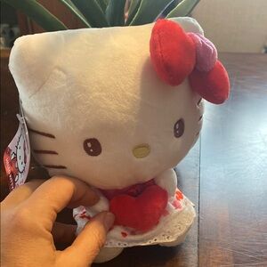 Charming Hello Kitty plush toy with a vibrant red bow. Ideal for fans and collectors.