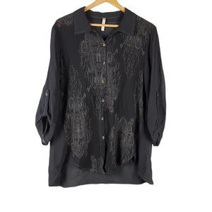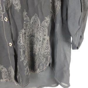 XCVI Button Up Stitch Blouse Embroider Gray Size Medium