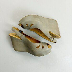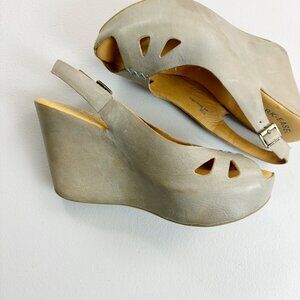 KORK-EASE Felicia Leather Wedge Slingback Sandal US 7 Reef Gray Garnet Hill