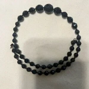 Black beaded choker. One layer of graduated, black, hard plastic, beads in great condition and can fit any style.
