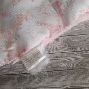 A pink/white plush fuzzy bed that rolls up for portability. Pattern print is "Paris" themed. Rippled cushion effect. Carry handle. 3 velcro tabs for closure. Attached label tags are very much frayed. Purchased online from Lakeside Collection as a pet bed, but really bought for my toddler (aged 1-2½yrs. old at the time, no longer need)...but can be used any way one may need it for....worked perfectly for me when I visited family, friends, & trips to the park. Material: 100% polyester. Measurements are approx.: 35½"x22½". See photos. Ask if you have questions. Thanks for stopping by!