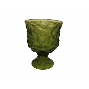 Vintage EO Brody Co Green Goblet Candy Dish Bowl Vase Planter Crinkle Glass Footed Compote Cottage Core