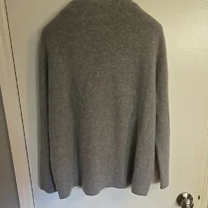 Soft and warm gray sweater. Perfect for chilly days. Heavyweight. Fabric tag is missing. Might be cashmere or wool/cashmere blend. No flaws