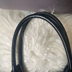 Tory Burch patent leather vinyl bag. Great for work or traveling. There are some stains inside and outside. But still a great overnight bag. See pictures for condition.
