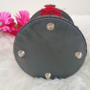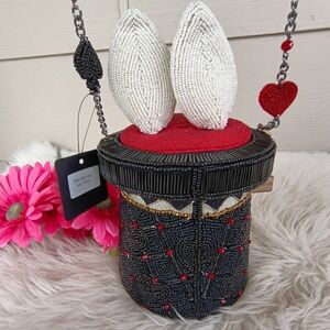 Mary Frances Red Black Hat Trick Beaded Magician's Rabbit In A Hat Novelty Bag