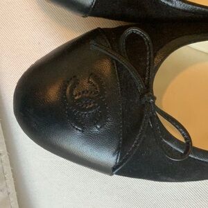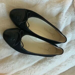 Elegant Chanel ballet flats in classic black. Perfect for any occasion with a timeless design.