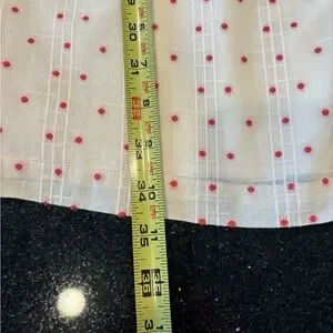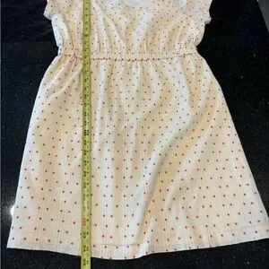 Chic cream midi dress. Features colorful, textured polka dots. Short sleeves and gathered waist. I love it but the color is not right on me.