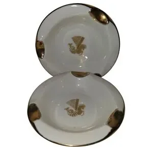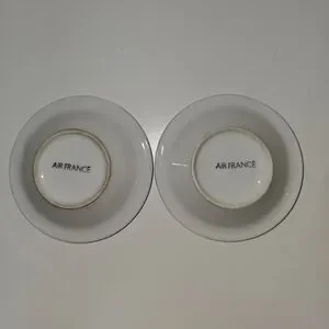 Vintage Mid-Century Air France Ashtrays. This is a used item. It is in good condition with no chips. The middle emblem is the AirFrance Emblem with gold accents. Material is procelean. They are 3" in diameter.