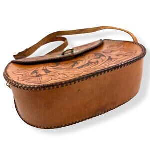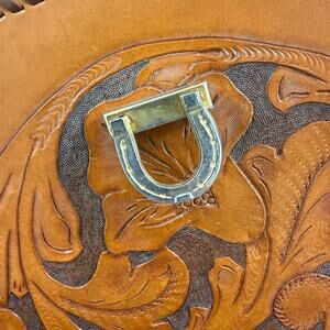 1950's cowgirl horseshoe buckle floral tooled leather handbag