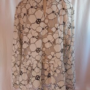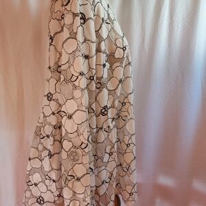 Women's preowned top in nylon cotton flowers attached with mesh, see-through in white and black