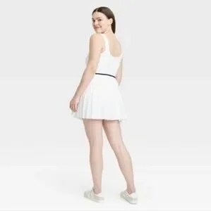 It has a small stain inside. You can see the pic.This All in Motion Tennis Activewear Dress is perfect for any active occasion, especially for tennis players. The dress comes in a crisp white color and is made of a comfortable polyester and spandex material that allows for a stretchable fit. It also features quick-dry technology and pockets for convenience.