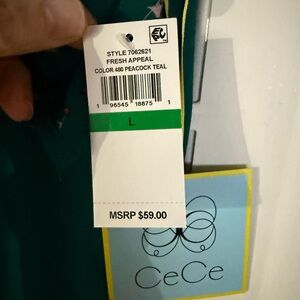 Teal Puff Sleeve Women's Top by CeCe size Large New With Tags NWT