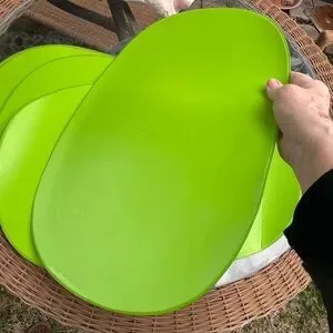 1970s Vintage Oval Vinyl Placemats Set 6 Blue Green