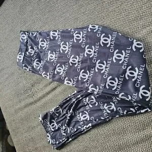 Stylish leggings featuring iconic logo design. Black and white color scheme.