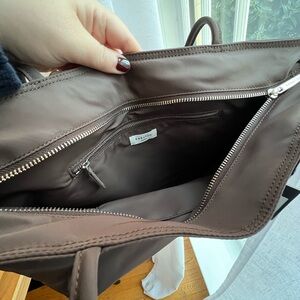Aritzia Babaton, brown, nylon bag. Perfect—I even have the smaller version, just missed the return window.