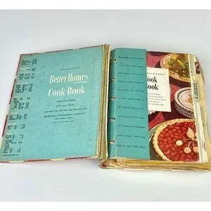 Set of 2 Better Homes and Garden cookbooks. The red cook has some tape securely holding binding together. Natural wear and tear and fading for the age. The gold cookbook also shows a little fading around binding crease but still in good condition. See all photos for actual condition.