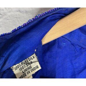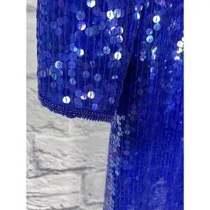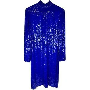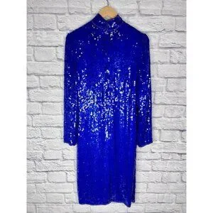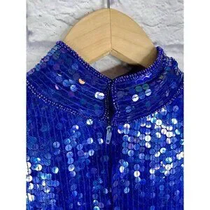 SCARLET RAGE Women's Vintage Blue Sequin Silk High Neck Sheath Dress Large