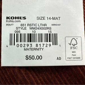 NWT Maternity Size 14 Brown Corduroy Ankle Pants with Belly Panel by Sonoma