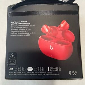 Beats true wireless earbuds in vibrant red. Comes with a USB-C charging case. (noise canceling)