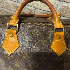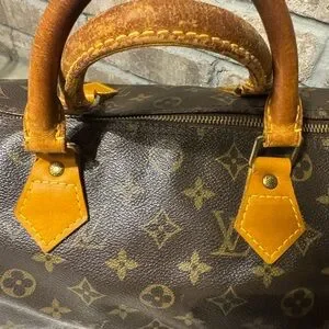 Authentic Louis Vuitton speedy 30 in fair condition. Strap connections have been refurbished by LV so the handles are now safely enact ready for many more years of use! Cracks in piping noted. Inside is clean, no stains to be noted. Inner slip pocket is clean no stains to be noted. No cracks or tears in handles but there are hairline fractures to chaps which at this age is to be expected. Does not come with lock and key or dust bag.