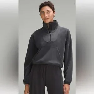 Lululemon Brushed Softstreme Ribbed Half Zip-Black-Size 10