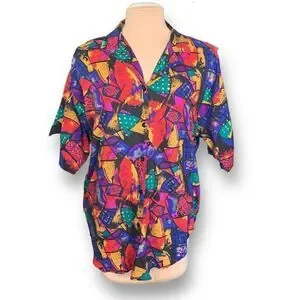Vintage A Personal Touch Shirt Multicolor Abstract Art Collared Button Up Plus