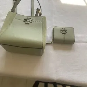 Tory Burch light green (Pine Frost) Crossbody Bag with matching wallet
