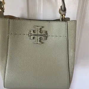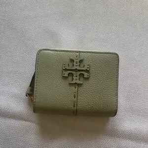 Tory Burch light/mint green (Pine Frost) McGraw small crossbody bag and matching wallet. Pebbled leather and suede. Used for one week on vacation. Bag has a bit of rubbing on one side of suede but barely noticeable. Wallet is in perfect condition. So cute for summer! Dust bag included. 6w 7h 5d