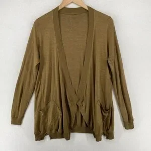 EILEEN FISHER Cardigan PL Silk Cotton Jersey Draped Open Front Long Sleeve Brown