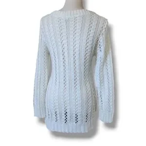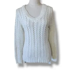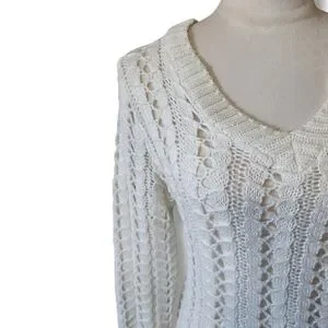 Pullover sweater from Delia's. V neckline. Woven. White with silver metallic thread woven throughout. Back hem is longer. GUC. Size XS.