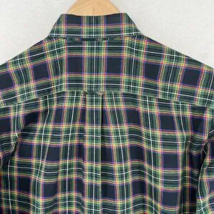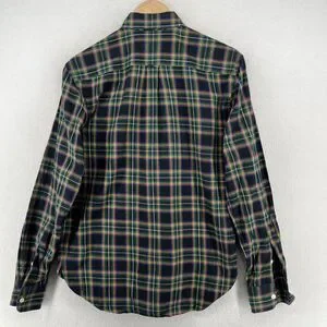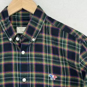 MAISON KITSUNE Shirt Mens 40 L Tartan Plaid Flannel Tricolor Fox Cotton Green