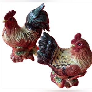 Colorful Fitz & Floyd Rooster Hen salt & Pepper Set