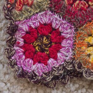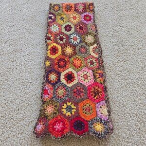 Ok, who's nana had a handmade afghan just like this? I've seen cheap versions of this scarf around, but this one is made from wool. Check out the closeups to see for yourself. It appears to be totally unused. No flaws, no damage, no holes, no pet hair, no odor.
