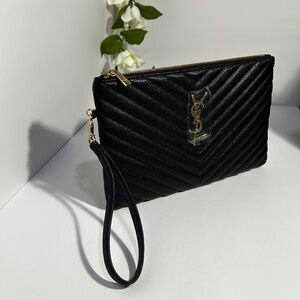 🌸Very Beautiful Saint Laurent Black quilted leather pouch /wallet