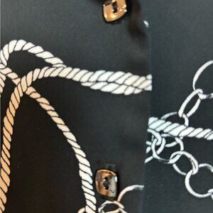 This Joseph Ribkoff blouse showcases a striking green and black color palette with a boxy silhouette and flutter sleeves. Very cool buttons. The graphic design adds a modern touch, while the polo collar provides a classic finish. Perfect for making a bold statement in any setting.