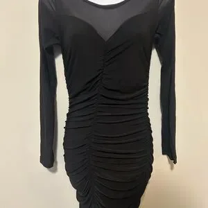 This elegant black ruched dress is perfect for any occasion. Its sleek design offers a flattering fit, making it a must-have in your wardrobe.