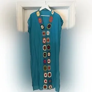 Turquoise maxi coverup with granny squares. One Size.