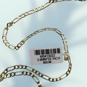 Primus Yellow Gold Plated Figaro Chain Necklace 22" Long, 3.6mm Wide