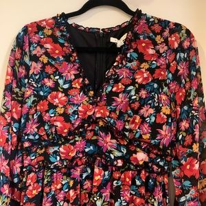 Black Pink Floral Sheer Dress