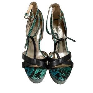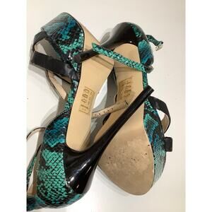 ShoeDazzle Green/Black/Blue Snakeskin Heels Size 8 - Statement, Glam, Night Out