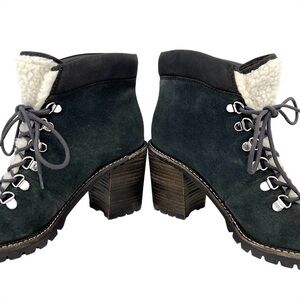 DOLCE VITA Post Faux Shearling-Trim Suede Booties in Navy Blue. Size 10.