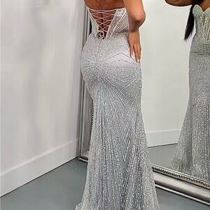 Alglist Silver Embellished Strapless Prom Gown NWT